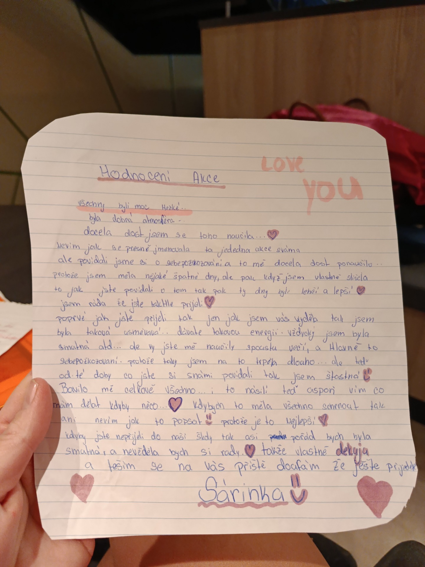 Jinak lidí jste byly všichni moc fajn moc dobře se s vámi mluvilo o všem co šlo. Ještě bych si to někdy zopakovala 😁